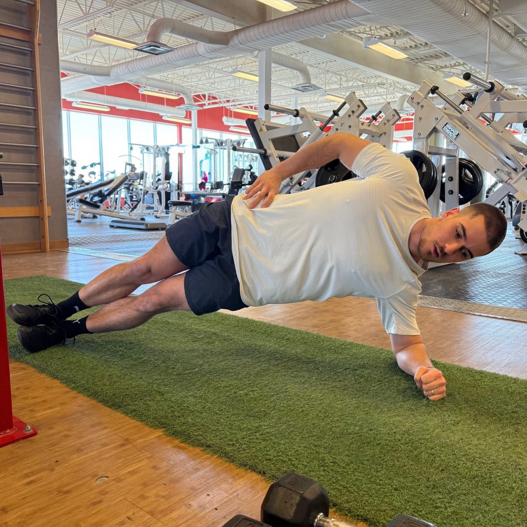 Good lateral stability allows for better control of each push and saves energy. This exercise strengthens the obliques, which are essential for balance and efficient movement.
