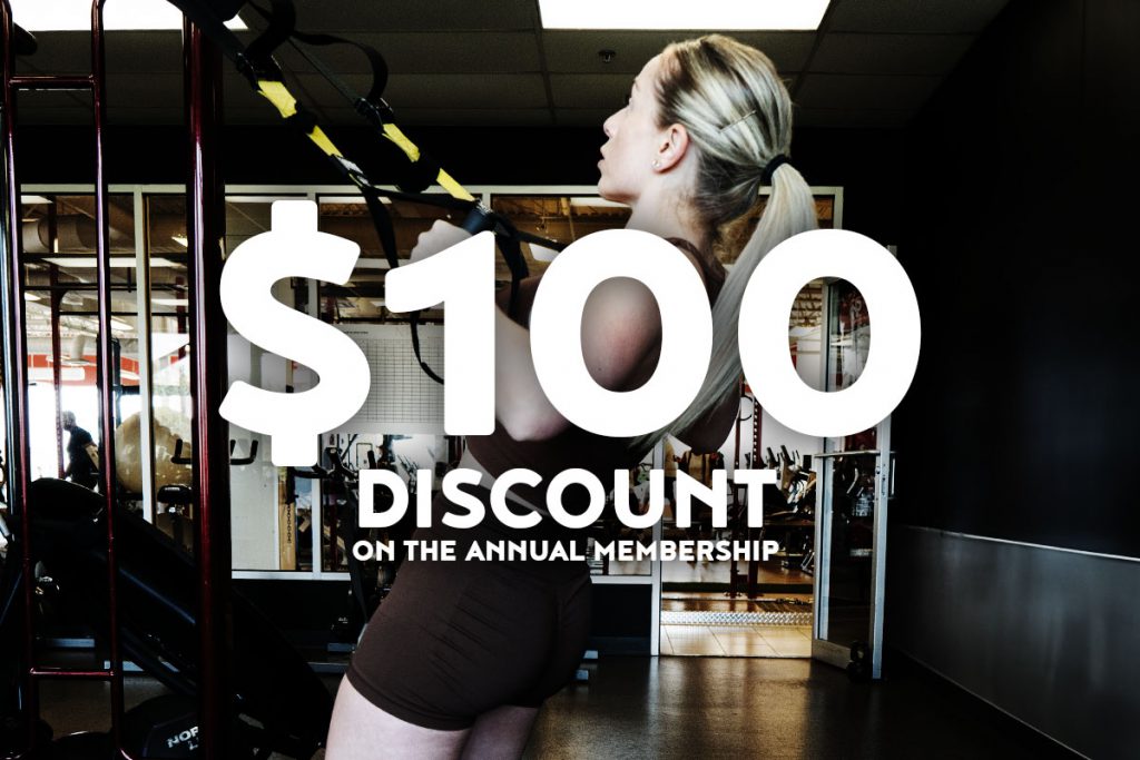 *Certain conditions apply. Offer valid for a limited time only. The $100 discount is applicable on the annual membership without credits, for people aged 26 to 64. The discount is $75 for people 25 years old and under and 65 years old and over. This offer is applicable online and in-club.